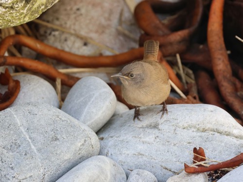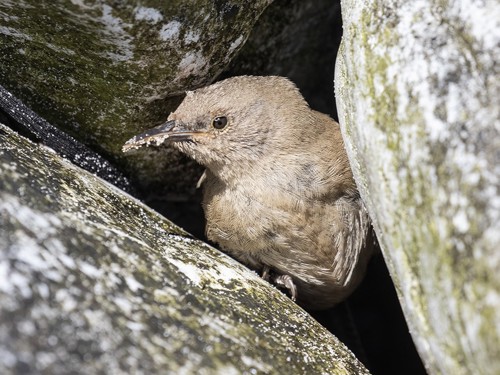 This small wren has adapted to forage along coastal shorelines where it scampers and hops, almost mouse-like, between boulders and cobbles, only taking flight when absolutely necessary. Its diet is highly dependent on the marine invertebrates found in the inter-tidal zone and within the stranded kelp along the high-tide line. In fact, isotope analysis has shown that 77% of the Cobb’s wren’s diet is marine-derived, making it possibly unique amongst wren species. Its numbers are greatest where cobble and boulder beaches are backed by thick tussac grass, and in this prime habitat males will fiercely defend breeding territories over the summer months.