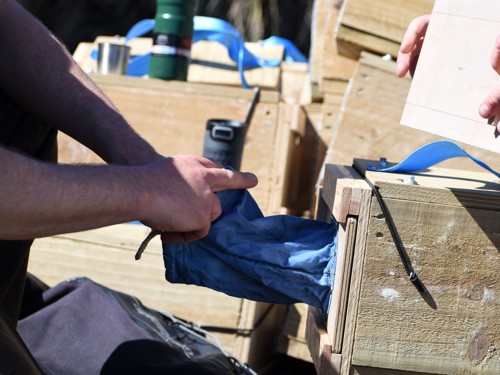 Part of the current work supported by Darwin Plus is a trial proof of concept to establish the best way to capture and move birds in a way that minimises stress and maximises the chance of success. In January 2025, seven Cobb’s wrens were captured on Kidney Island, then ringed, moved, and released on Top Island. Birds were transported in specially built transfer boxes with bedding, food, and water available at all times. These boxes were converted from the original rat trap boxes that had once previously been used for rodent clearance, a sustainable solution and a full circle moment.